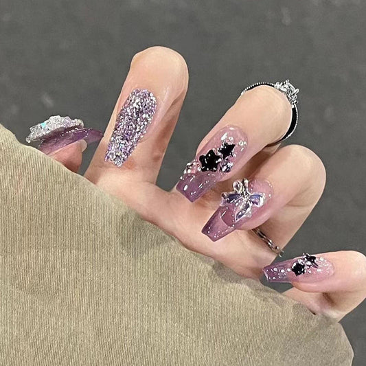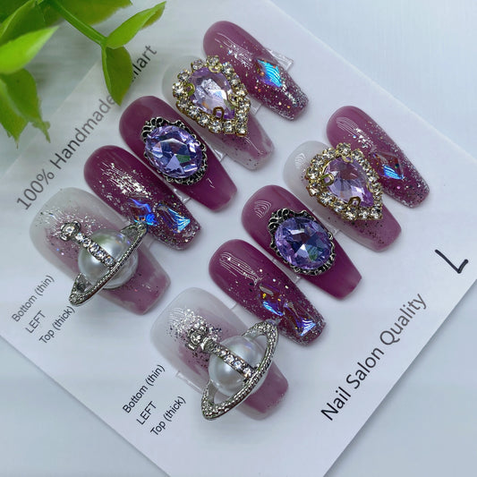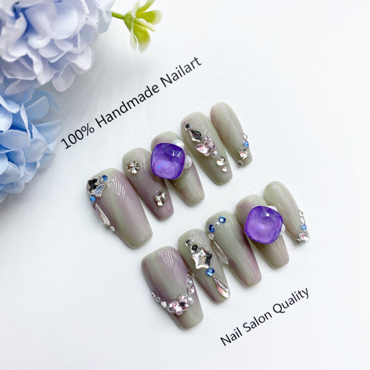 Designer: DuoDuo 3004.Handmade nails Press on Nails DIY Nail Art for woman girl Long Coffin wedding purple