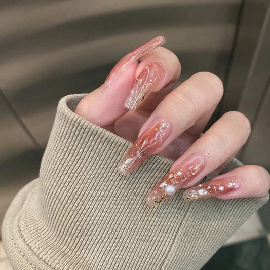 Handmade Nails Press on Nails DIY Nail Art for Woman Girl Nail Design Long Coffin 2023 TN-8045