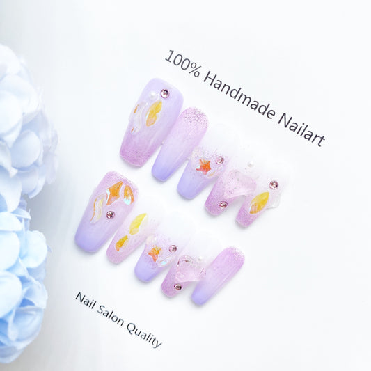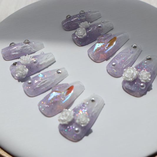 Designer: DuoDuo 1100.Handmade nails Press on Nails DIY Nail Art for woman girl Long Coffin purple wedding