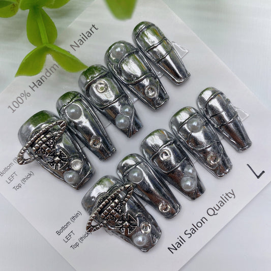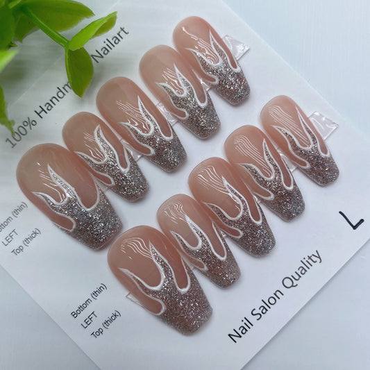 Designer: DuoDuo 2044.Handmade nails Press on Nails DIY Nail Art for woman girl Long Coffin wedding