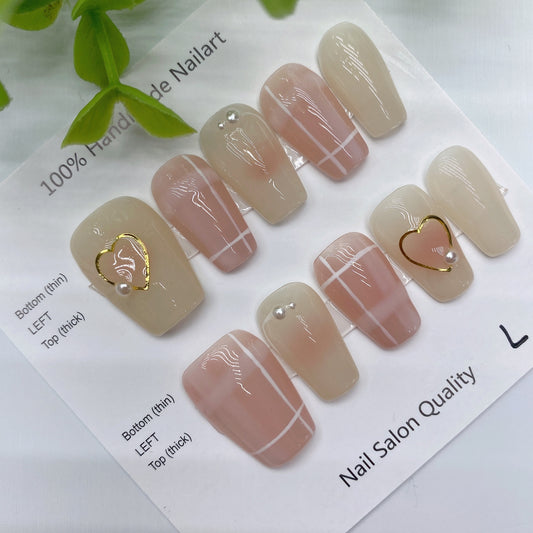 Handmade Nails Press on Nails DIY Nail Art for Woman Girl Nail Design Long Coffin 2023 TN-9002