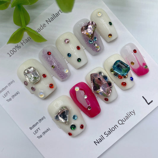 Designer: DuoDuo 1112.Handmade nails Press on Nails DIY Nail Art for woman girl Long Coffin pink wedding rhinestone