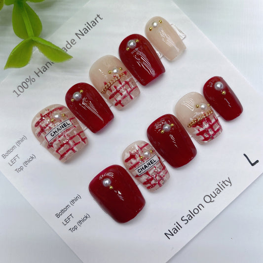 Handmade Nails Press on Nails DIY Nail Art for Woman Girl Nail Design Long Coffin 2023 TN-8048