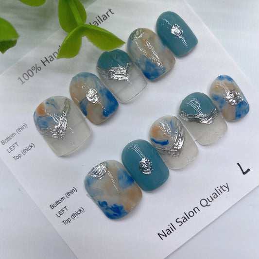 Handmade Nails Press on Nails DIY Nail Art for Woman Girl Nail Design Long Coffin 2023 TN-8051