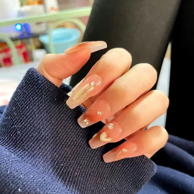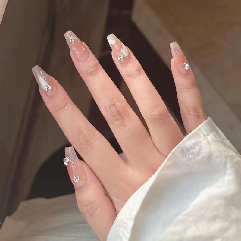 Designer: DuoDuo 1306.Handmade nails Press on Nails DIY Nail Art for woman girl Long Coffin wedding pink