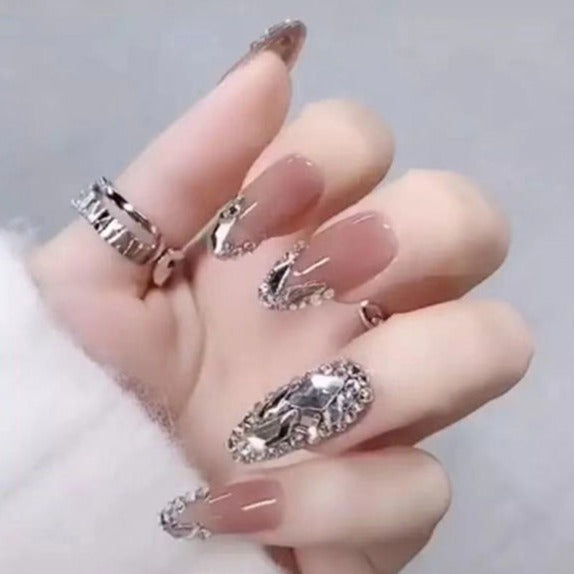 Designer: DuoDuo 1313.Handmade nails Press on Nails DIY Nail Art for woman girl Long Almond rhinestone pink