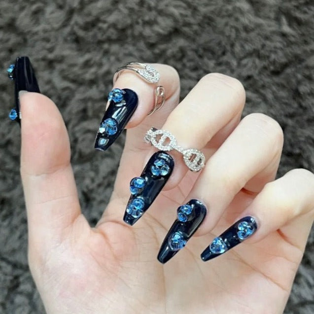Designer: DuoDuo 1611.Handmade nails Press on Nails DIY Nail Art for woman girl black Coffin Long