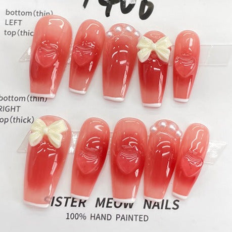 Designer: MeowMeow.Handmade Nail Designs Press on Nails DIY Nail Art for woman girl Long Coffin pink red