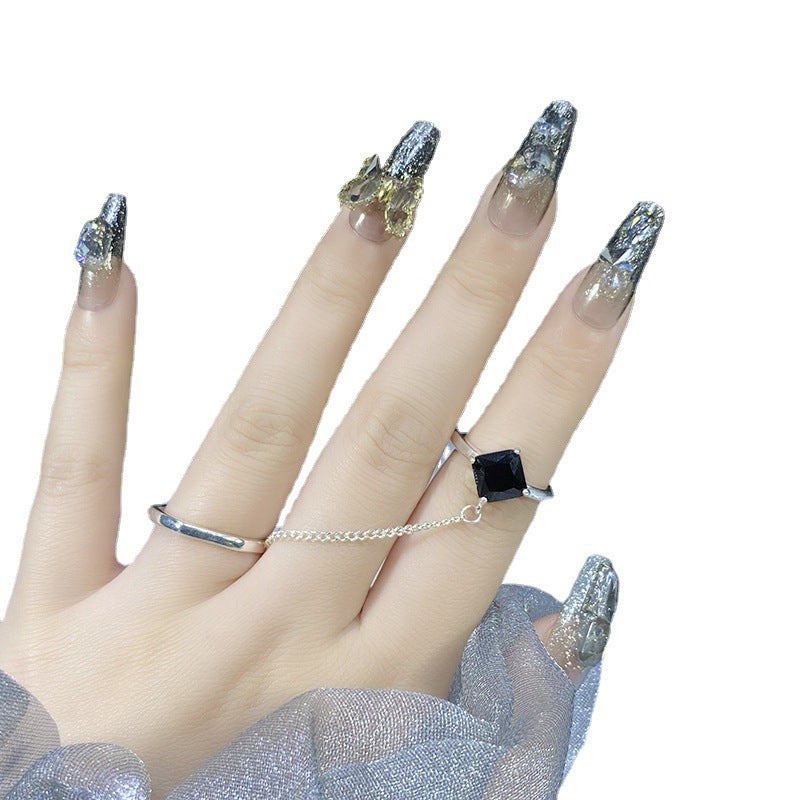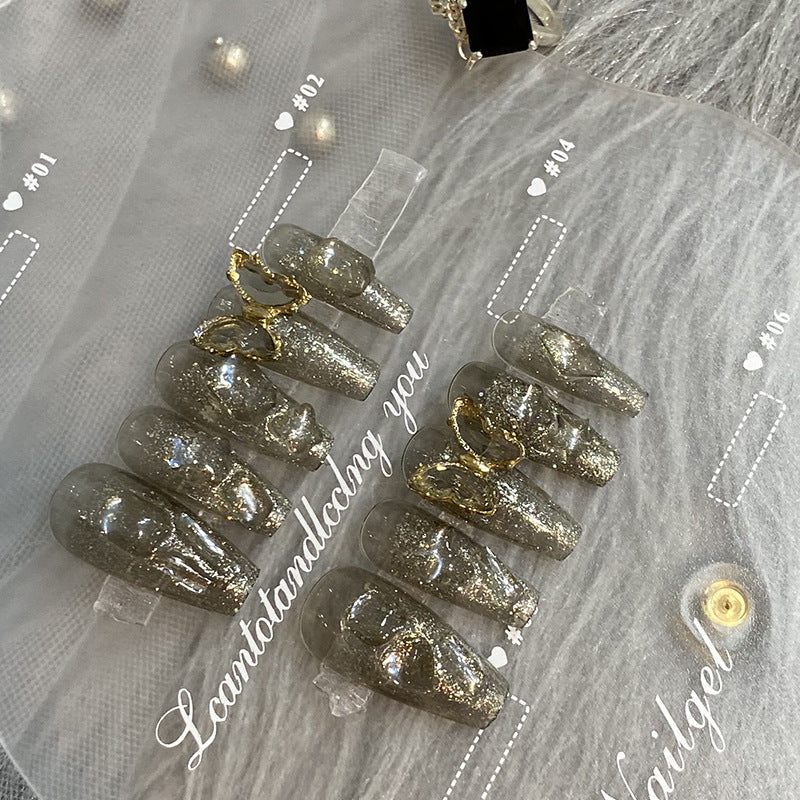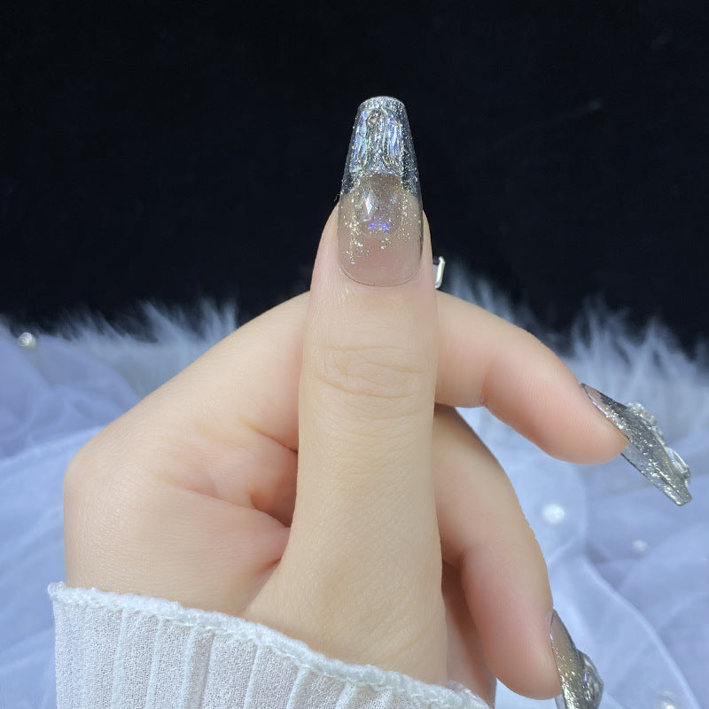 Designer: HuaHua.Handmade nails Press on Nails DIY Nail Art for woman girl Long Coffin silver